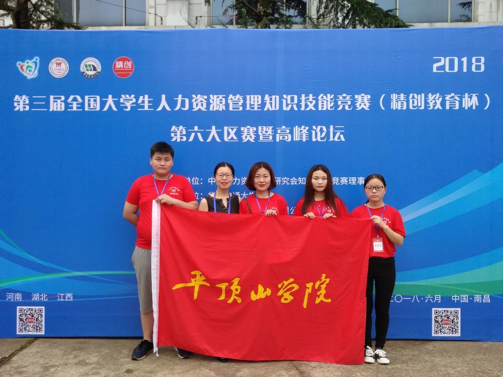 6月9日,第三届全国大学生人力资源管理知识技能竞赛(精创教育杯)第六大区赛暨高峰论坛在江西南昌华东交通大学举办。此次竞赛由来自河南省、湖南省、江西省三省共58支参赛队伍,二百余名学生参加竞赛。由我院侯静怡、钟文彩等四人组成的参赛队伍在贺杰老师与王翠英老师的指导下参加竞赛。
