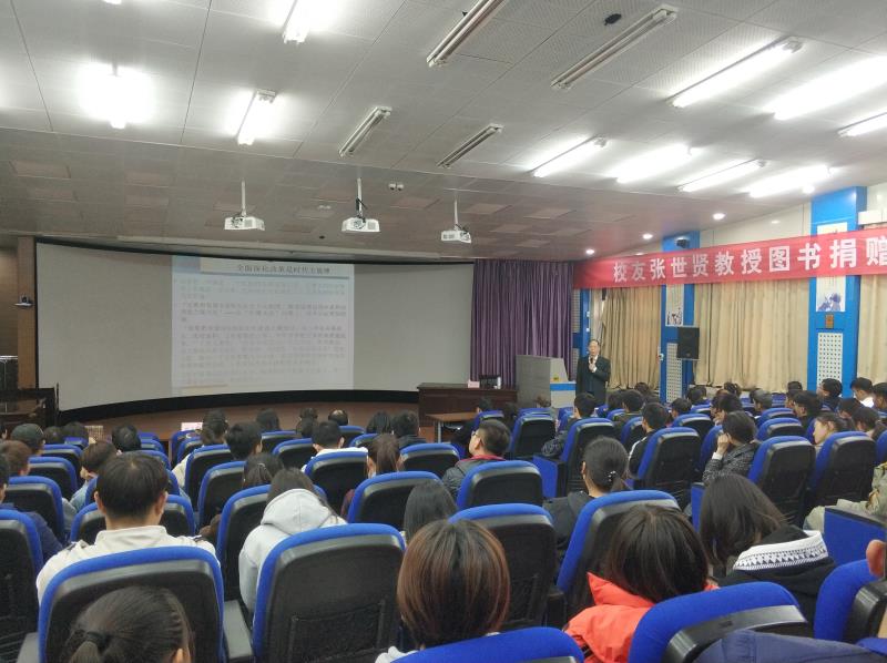捐赠仪式后举行了报告会,张世贤教授为在座的全体师生做了题为《供给侧结构性改革解读》的学术报告。张教授围绕“供给侧改革的现实背景”、“形成新常态供给侧的原因”、“供给侧结构性改革的理论基础”、“如何深化供给侧结构性改革”几个方面进行了详细阐释。从古代供给学派前身引入,由古至今阐述了供给学派的观点,从而引出供给侧改革理论。张教授以幽默的语言、生动的事例、深入浅出的讲解使同学们对我国正在进行的供给侧改革与创新发展有了更加全面的了解,会场时常发出阵阵掌声。最后,他勉励同学们要珍惜现在的学习机会,多读书、读好书,不断完善自己的知识体系。