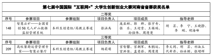 7月22日,第七届中国国际“互联网+”大学生创新创业大赛河南赛区决赛落下帷幕,此次大赛以“我敢闯、我会创”为主题,全省百余所高校的学生参与了本次比赛,tyc7111cc太阳成集团共有19个项目获奖,我院的2支团队喜获佳绩。其中由18中外会计二班张涵禹同学负责、胡芸老师指导的“智慧云矿—全国首创5G无人矿山数据监测管理系统”项目荣获省级二等奖;由18保险一班的杨莉萌同学负责、李文同院长指导的“高校餐厨运营管理专家—智慧云餐厅”项目荣获省级三等奖。
