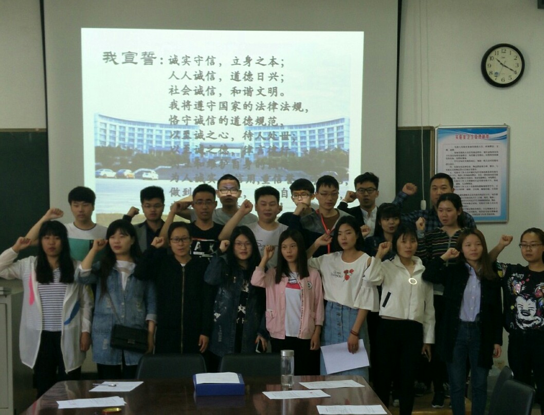 会议伊始,张老师向全体与会学生详细解说了学生毕业后的还款流程、还款期限、还款延期等问题,并结合案例对可能造成违约的几种情况及后果进行了重点说明,提醒学生毕业后按时还本付息,维持良好信用记录。随后,学生干部张亚楠向大家详细讲解还贷的流程,最后,全体贷款学生庄严宣誓,认真填写、签署了《毕业生国家助学贷款还款承诺书》并郑重按下手印,承诺按期还款,诚信从自身做起。
