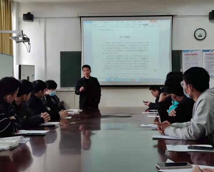 罗晨阳老师向同学们介绍了个人兴趣与科研方向,并向大家分享2018、2019级学生科研团队开展“大学生创业指导”、“绩效评价项目”等各类活动,最后向同学们提出入伙要求与期望。
