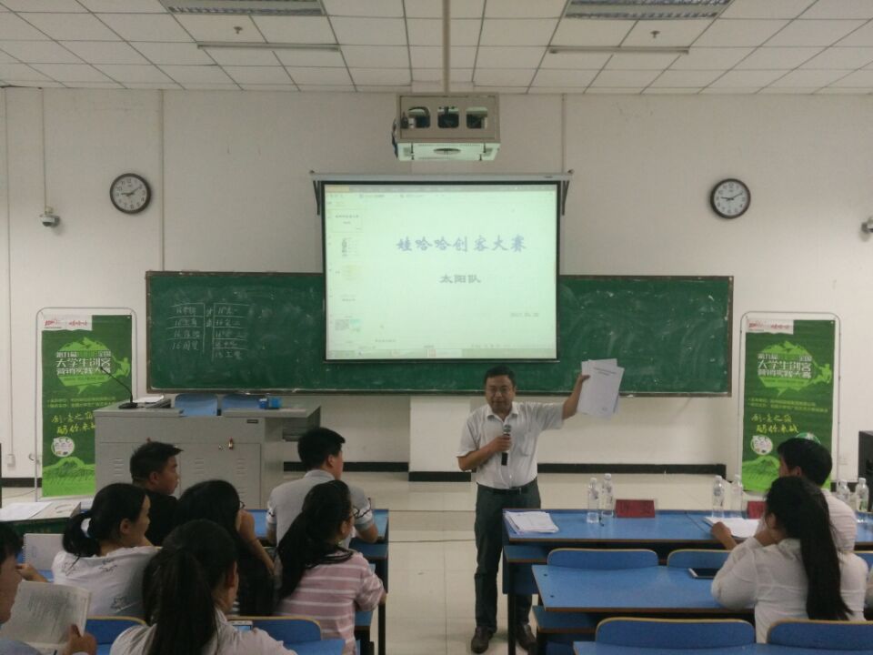 6月1日晚,由杭州娃哈哈集团主办、太阳成集团tyc7111承办以及太阳成集团tyc7111市场营销教研室和太阳成集团tyc7111市场营销协会协办的第九届娃哈哈全国大学生创客营销实践大赛决赛在图书馆L108室举行。杭州娃哈哈集团有限公司平顶山分公司经理马占彬、太阳成集团tyc7111副院长李文同、太阳成集团tyc7111市场营销教研室主任张逸风等领导以及太阳成集团tyc7111市场营销教研室的五名老师和太阳成集团tyc7111近五百名学生参加了本次比赛。