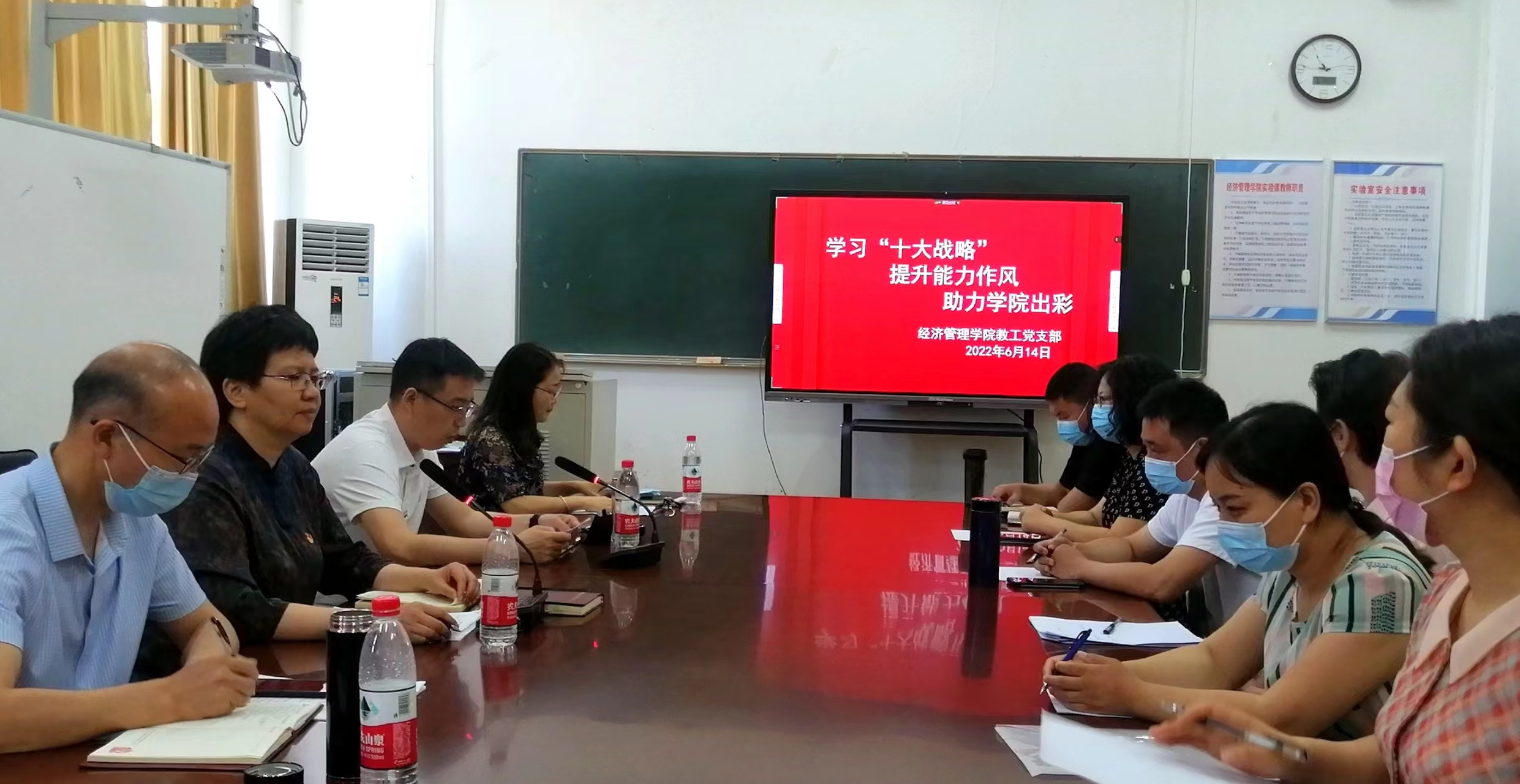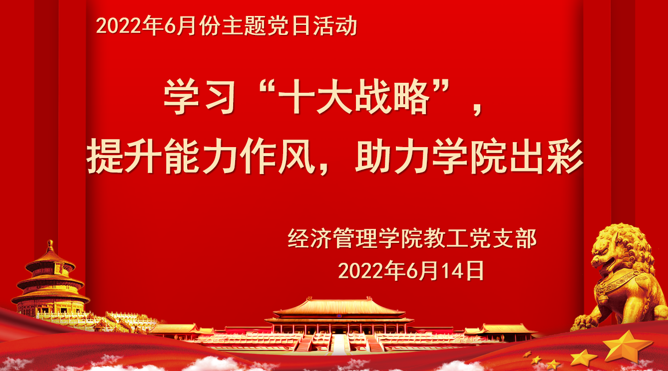 为深入贯彻落实省委教育工委《关于组织党员进党校学习“十大战略”的通知》精神,结合“能力作风建设年”活动要求,2022年6月14日上午,太阳成集团tyc7111教工党支部通过线上和线下相结合的方式开展了“学习‘十大战略’,提升能力作风,助力学院出彩”主题党日活动。活动由太阳成集团tyc7111党委副书记李刚主持,全体党员教师参加了此次活动。