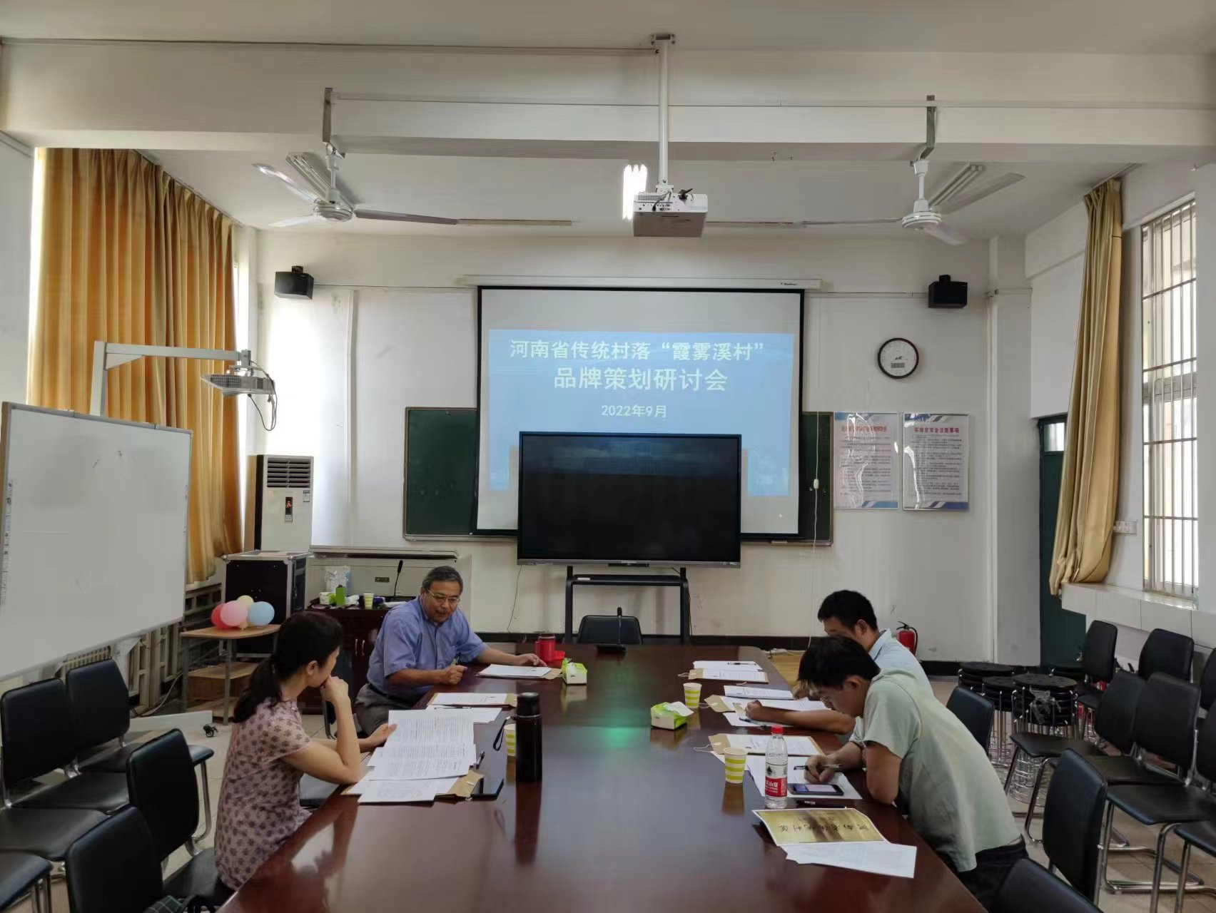 2022年9月13日下午,河南省传统村落“霞雾溪村”品牌策划研讨会在我院1410教室举行,课题组成员共6人参加了研讨。