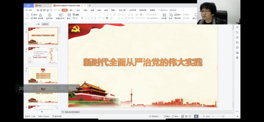 此次讲座以详实的数据和鲜活的案例展开。讲座期间,刘书记以新时代全面从严治党的伟大实践为出发点,带领学生了解党的十八大以来党中央全面从严治党的重要举措以及取得的巨大成就,引导学生清醒认识当前全面从严治党形势,加强自我修养,坚定道路自信、理论自信、制度自信、文化自信,把个人成长纳入党和国家发展的整体事业中,理解全面从严治党的重要性,强化法律意识、纪律观念和规矩意识,成长为有理想、敢担当、能吃苦、肯奋斗的新时代好青年。