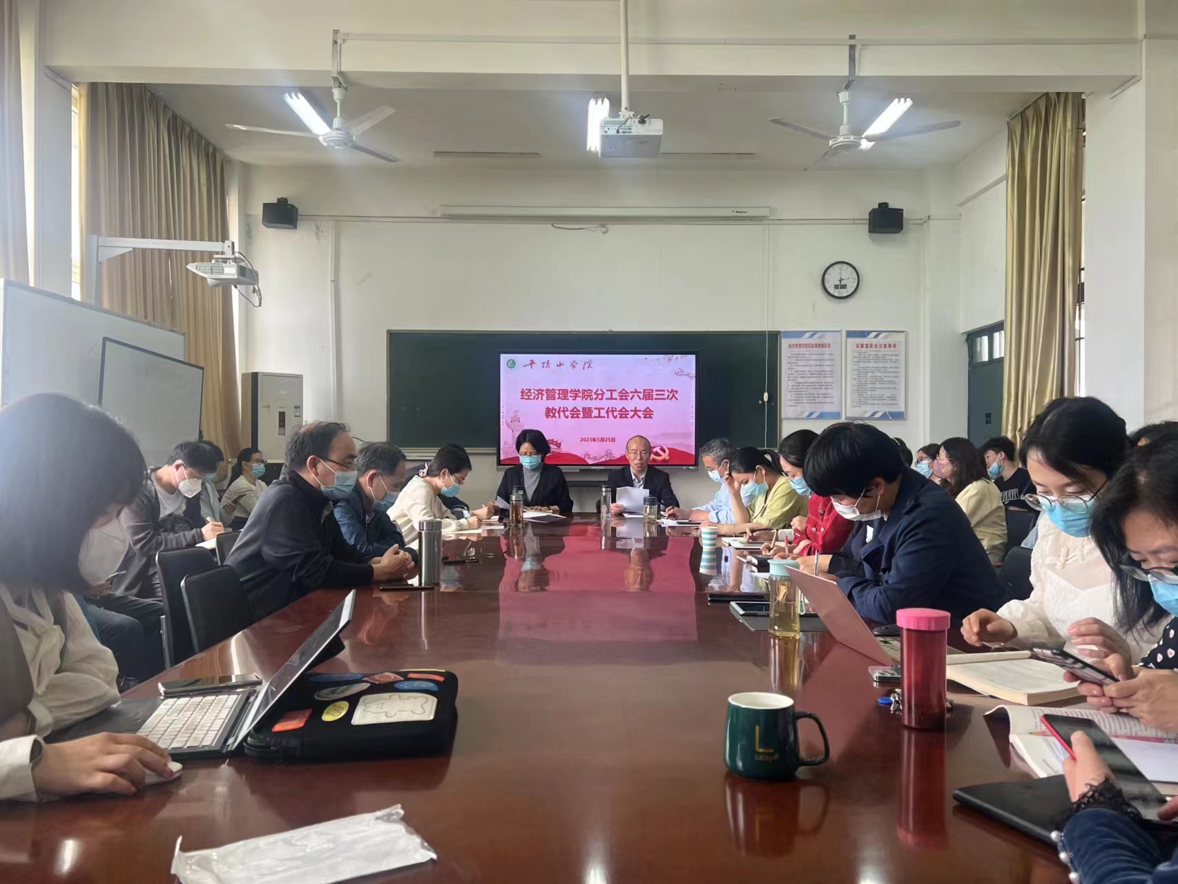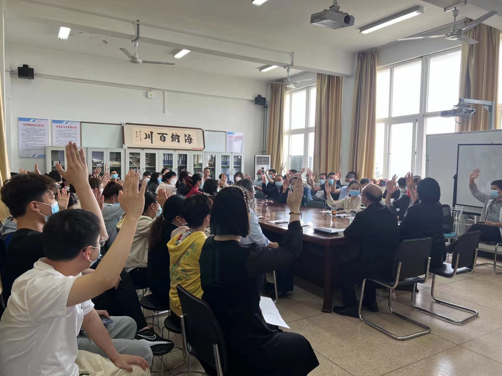 教职工代表们就学科专业建设、师资队伍建设、管理服务育人问题进行了热烈讨论,并表决通过两个报告。