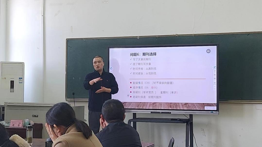 樊博士针对外文核心期刊发表的难度、文章结构与写作关键点、写作顺序、写作思维、投稿技巧等方面,结合自身经验给大家做了详细的阐述,内容生动、具体,针对性强,让全体与会教师深受启发、受益匪浅。