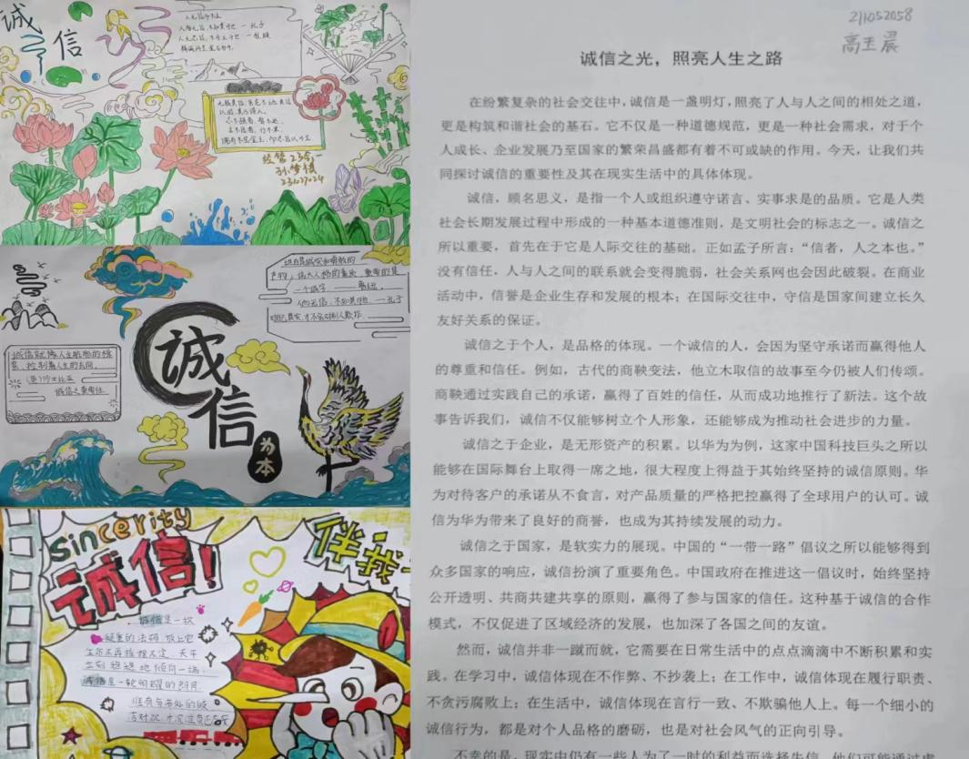 活动期间,全体学生积极投稿作品,作品类型有诚信征文、诚信手抄报、诚信宣传画等。