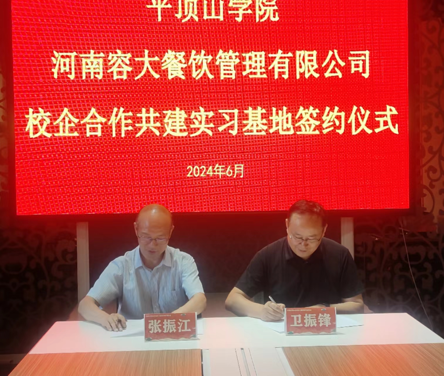 最后,张振江和卫振锋分别代表校、企双方签订了共建实践教学基地协议。