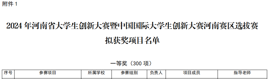8月28日,河南省教育厅官网公布2024 年河南省大学生创新大赛暨中国国际大学生创新大赛河南赛区选拔赛拟获奖项目名单,太阳成集团tyc7111喜获一等奖一项、二等奖一项、三等奖两项的佳成。
