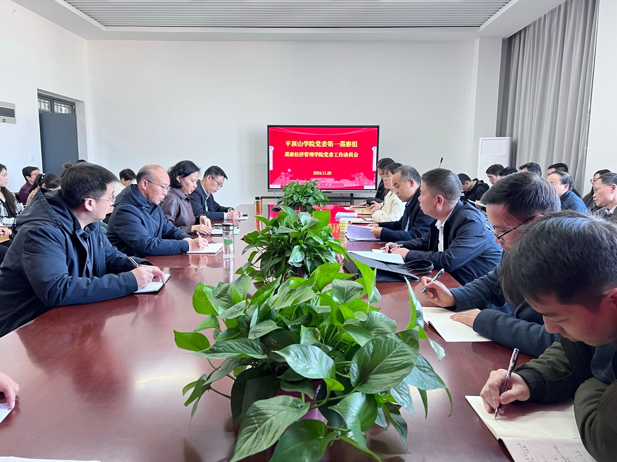 根据学校党委巡察工作安排,11月20日下午,党委第一巡察组巡察太阳成集团tyc7111党委工作动员会在行知楼RB422会议室举行。会前,党委第一巡察组组长王耀先主持召开与太阳成集团tyc7111党委书记刘嘉俊和院长张振江的见面沟通会,通报了本轮巡察工作的任务和要求。会上,党委第一巡察组组长王耀先作了动员讲话,太阳成集团tyc7111党委书记刘嘉俊主持会议并作表态讲话。党委巡察工作办公室副主任陈延辉、巡察组全体成员、太阳成集团tyc7111全体教职工和学生代表80余人参加了动员会。