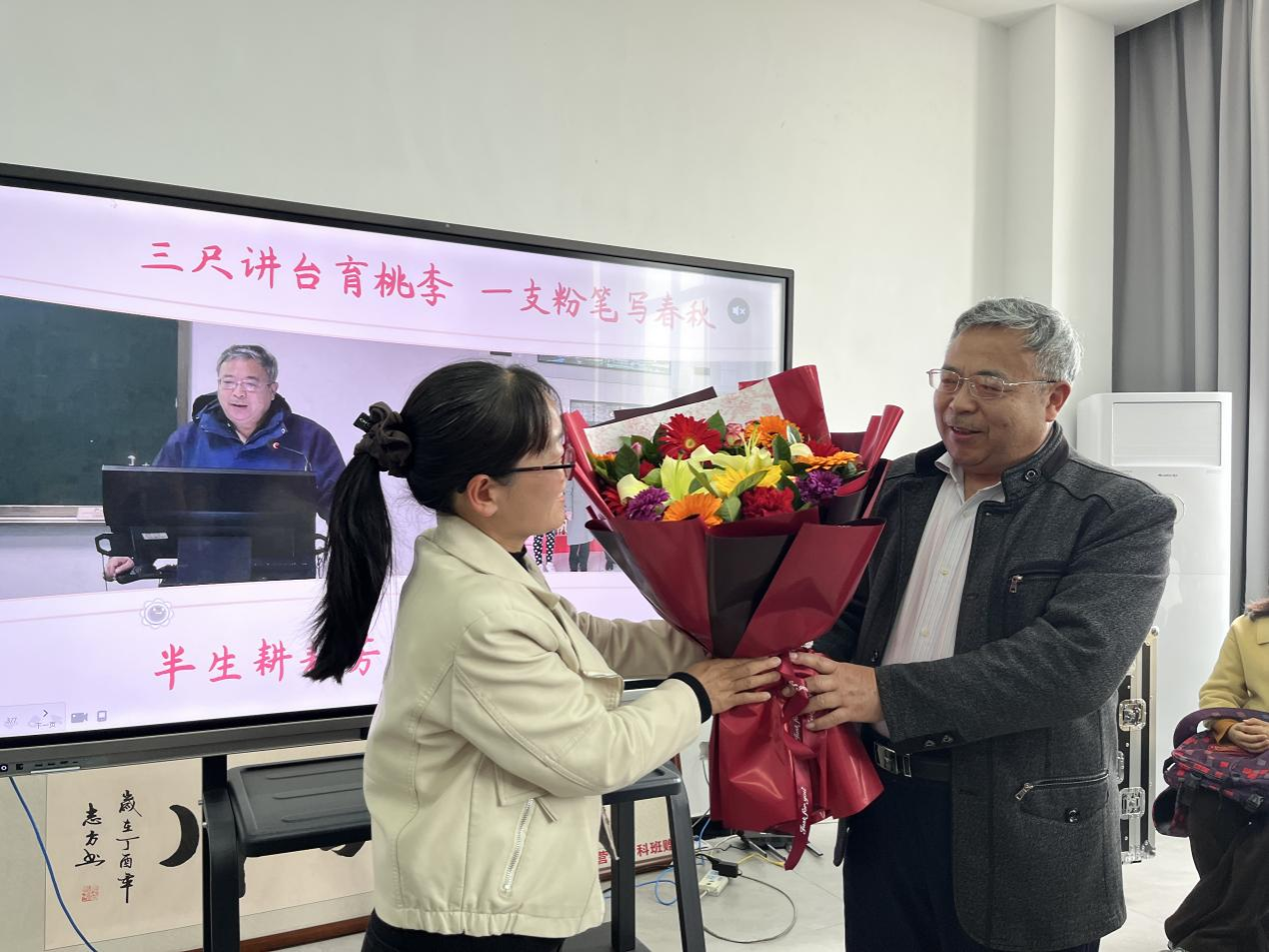 仪式最后,李文同副院长将自己编撰的专著与书籍赠予学院资料室,希望为青年师生学术成长提供助力。青年教师代表向其献上鲜花,表达敬意与祝福。