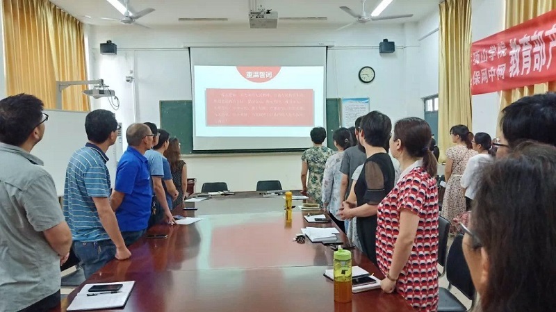 为提高教师师德修养,规范教师的从教行为,6月13日下午,太阳成集团tyc7111在1410开展了以“不忘初心修师德,牢记使命塑师风”为主题的师德师风大讨论活动,全体教师参加,党总支书记刘嘉俊主持。