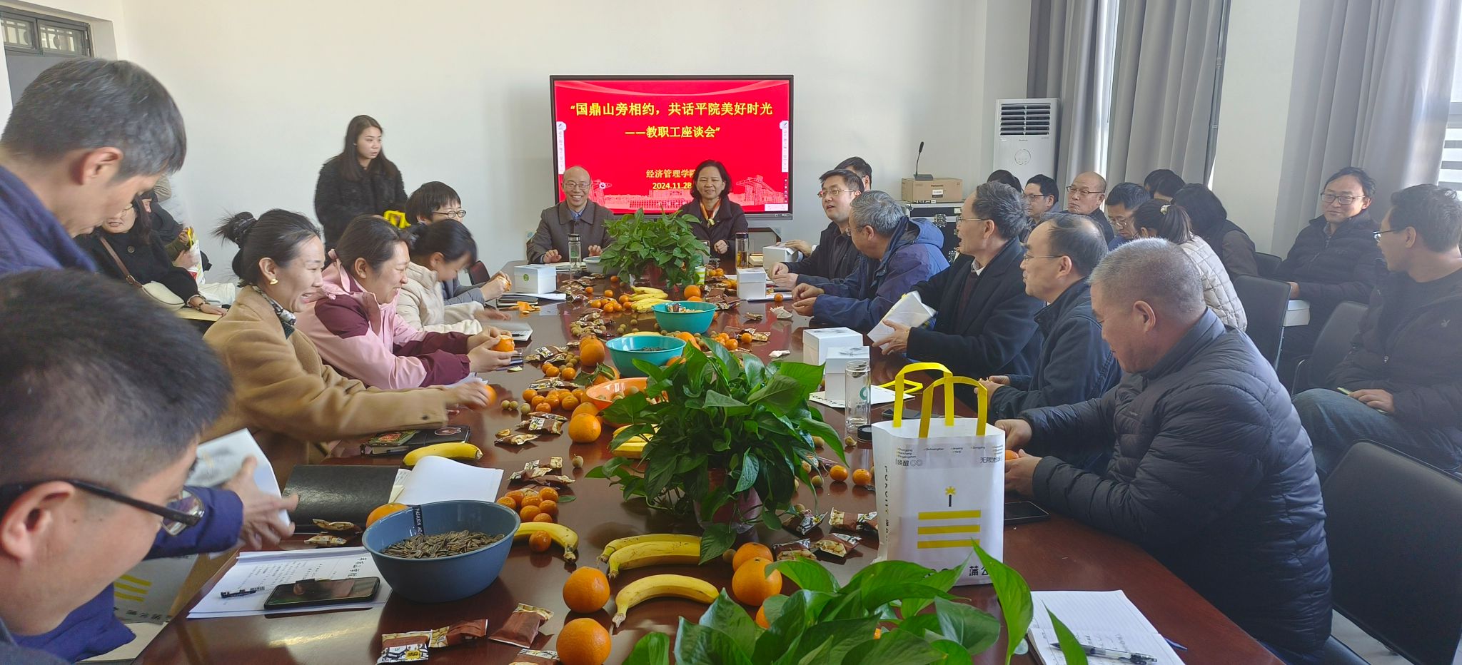 为进一步增强教职工之间的沟通交流和凝聚力,为教师们提供交流平台,倾听教师声音,2024年11月28日下午,我院分工会在行知楼RB422组织举办了以“国鼎山旁相约,共话平院美好时光”为主题的教职工座谈会。