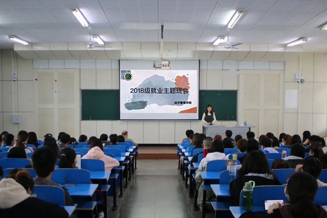 班会上,2018级辅导员孙冰颖介绍了往年就业形势,并围绕当代大学生的就业现状,从就业时机、择业方向、期望评估、简历制作等方面与同学们展开互动交流。孙老师希望在场同学能调整好就业心态,明确目标,主动把握寄予,实现充分就业。