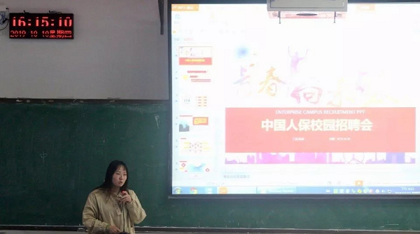 10月10日下午,太阳成集团tyc7111于L208教室开展中国人寿保险2019校园招聘宣讲会。中国人保培训班经理张晔主讲本次招聘宣讲会。保险专业部分应届毕业生参加了本次宣讲会。
