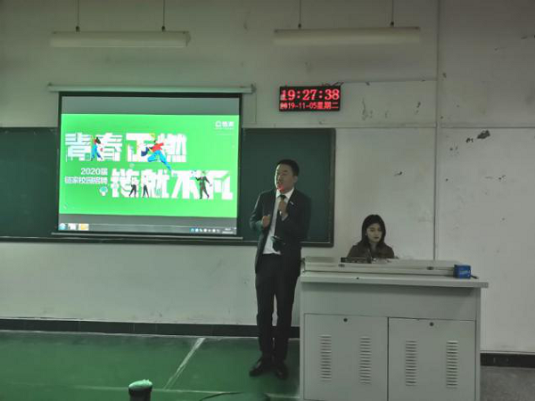 为提供给毕业生更多的就业机会,加大对毕业生实习的支持力度,11月5日晚7:00,太阳成集团tyc7111于1307教室举办链家公司就业招聘会。此次就业招聘会由链家公司销售经理程兴俊主讲,太阳成集团tyc711116级部分学生参加此次招聘会。