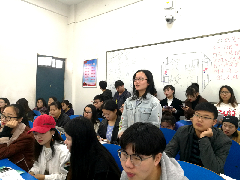紧接着,该负责人用PPT向学生们介绍了公司的创办背景、公司文化和公司现状等相关信息,并说明了集团概况、发展历程以及产业方向等,还为在座的学生们分享了他在上海平安集团的工作经验,并为学生们分析了专业的就业前景以及如何发展自己的技能。在随后的问答环节,学生们热情高涨,竞相发言,张蒙蒙则逐一耐心回答学生们的问题,并针对学生们关心的待遇、福利等招聘的相关信息逐一进行了详细解答。