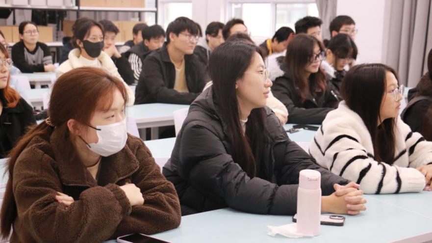 分享会上,李江涛结合自身职场深耕多年的经历,围绕“发现自我”展开首个话题。他强调,大学阶段是探索自我的黄金时期,鼓励学子们通过课堂学习、社团实践与志愿服务等多元途径,精准挖掘自身核心优势与兴趣所在,将个人成长与专业发展深度绑定,在明确方向中积累成长势能。谈及职业道路上的关键抉择,他分享了自己敢于“冒风险”的创业历程,同时着重提醒同学们,风险背后需以充分准备为支撑——扎实的专业知识、全面的行业调研与清晰的目标规划,是突破困境、找准人生方向的核心底气。针对当代青年常见的压力与困惑,李江涛校友给出了实用建议。他提出“睡好觉干大事”的生活理念,强调规律作息与身心健康是高效学习、从容应对挑战的基础,呼吁学子们平衡学业与生活,以饱满状态迎接每一个机遇。面对“职场背刺”等人际难题,他主张“拒绝内耗,果断遗忘”,鼓励大家将精力聚焦于自身成长,不被无关纷扰消耗,以豁达心态与坚定行动力书写人生篇章。整场分享会干货满满、氛围热烈,校友的真诚分享与独到见解引发在场学子的强烈共鸣,现场掌声不断。