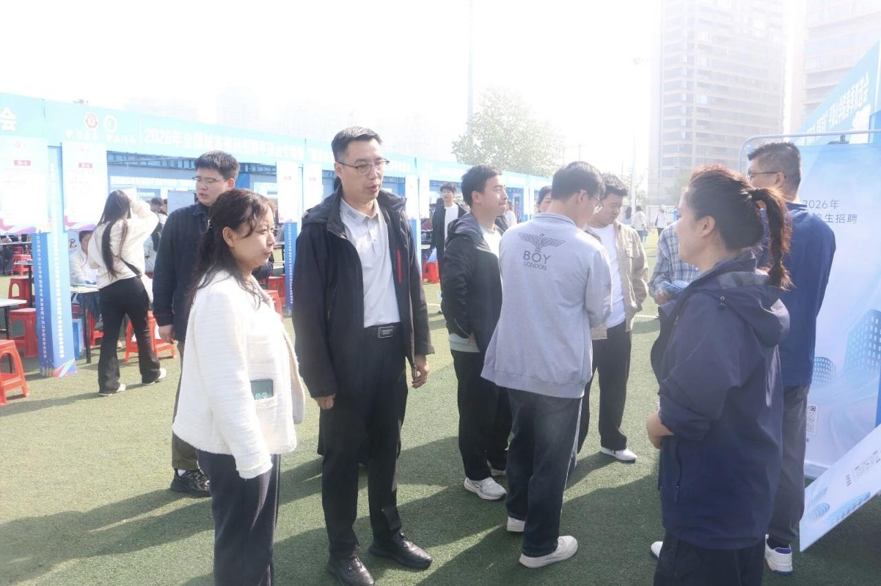 4月10日,“职引未来 职在河南”2026年全国城市巡回招聘平顶山专场暨“豫荐未来 青春启航”tyc7111cc太阳成集团春季双选会在湖滨校区体育场成功举办。我院积极组织大四毕业生和大三年级学生参会,并同步开展访企拓岗、校企合作前期对接工作。党委副书记李刚、副院长刘军英,各教研室主任,毕业班辅导员及学生代表共同参加此次活动。