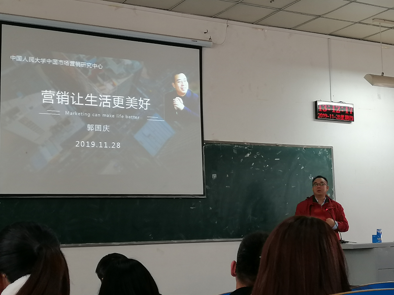下午,郭国庆教授在2306教室为市场营销和工商管理两个专业的300余名学生做了题为《营销让生活更美好》的学术报告。郭国庆教授围绕如何理解营销、营销增进人类福祉、善用营销技术、服务营销与服务便利、数字经济背景下的营销、营销让生活更美好等六方面进行讲授。郭国庆教授以“人生无处不营销,五创中营销,立己达人;己欲而立人,营销增进社会和谐,营销成就辉煌人生”强调营销增进人类福祉,通过分析大量的国内外经典营销案例,让在场的学生更加深入的理解4P营销理论、服务便利的定义、界定服务便利的五个维度以及影响服务便利的四大因素。