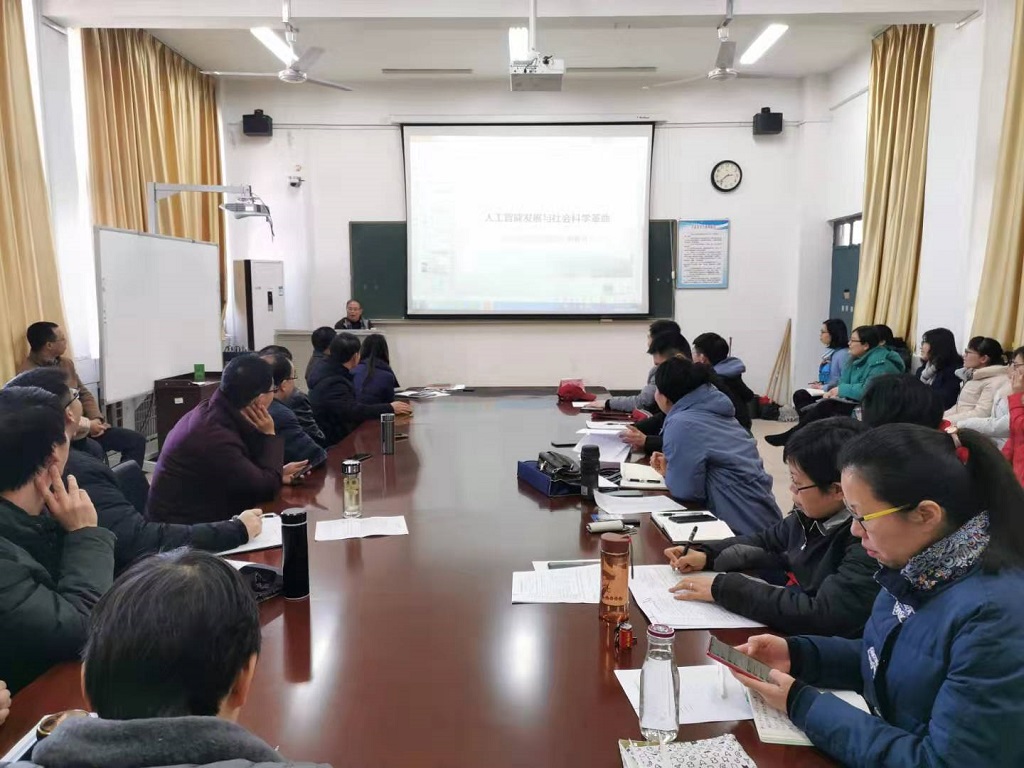 12月26日下午,太阳成集团tyc7111承办的专家讲堂专题学术报告在1410教室举行。武汉大学教授罗教讲应邀来我校作题为人工智能的发展与社会科学革命的专题报告,太阳成集团tyc7111全体教师参加。