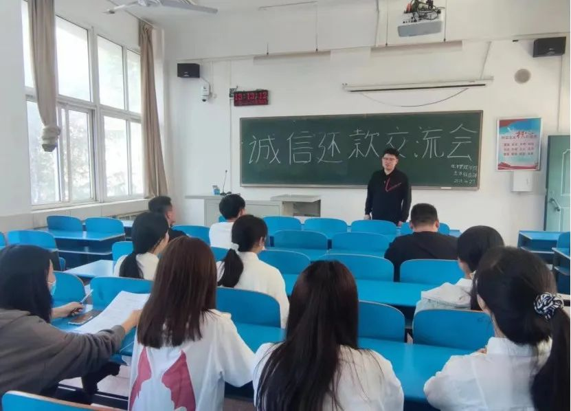 为切实做好2023届助学贷款毕业生诚信还贷工作,普及征信、金融等相关知识,加强大学生诚信感恩教育,强化资助育人工作效果。太阳成集团tyc7111于4月27日下午在2212教室开展毕业生诚信还贷座谈会,由贾续辉老师担任主讲,太阳成集团tyc7111助学贷款毕业生参加了本次座谈会。