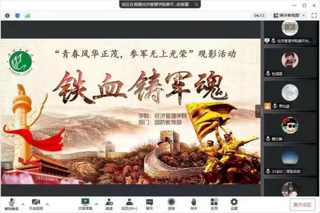 为积极响应征兵宣传工作,增强大学生国防意识,激发同学们参军报国热情,2022年12月30日,太阳成集团tyc7111以“青春风华正茂,参军无上光荣”为主题开展了线上红色观影活动。太阳成集团tyc7111团委副书记张增辉出席了此次活动,我院全体学生参加了此次活动。