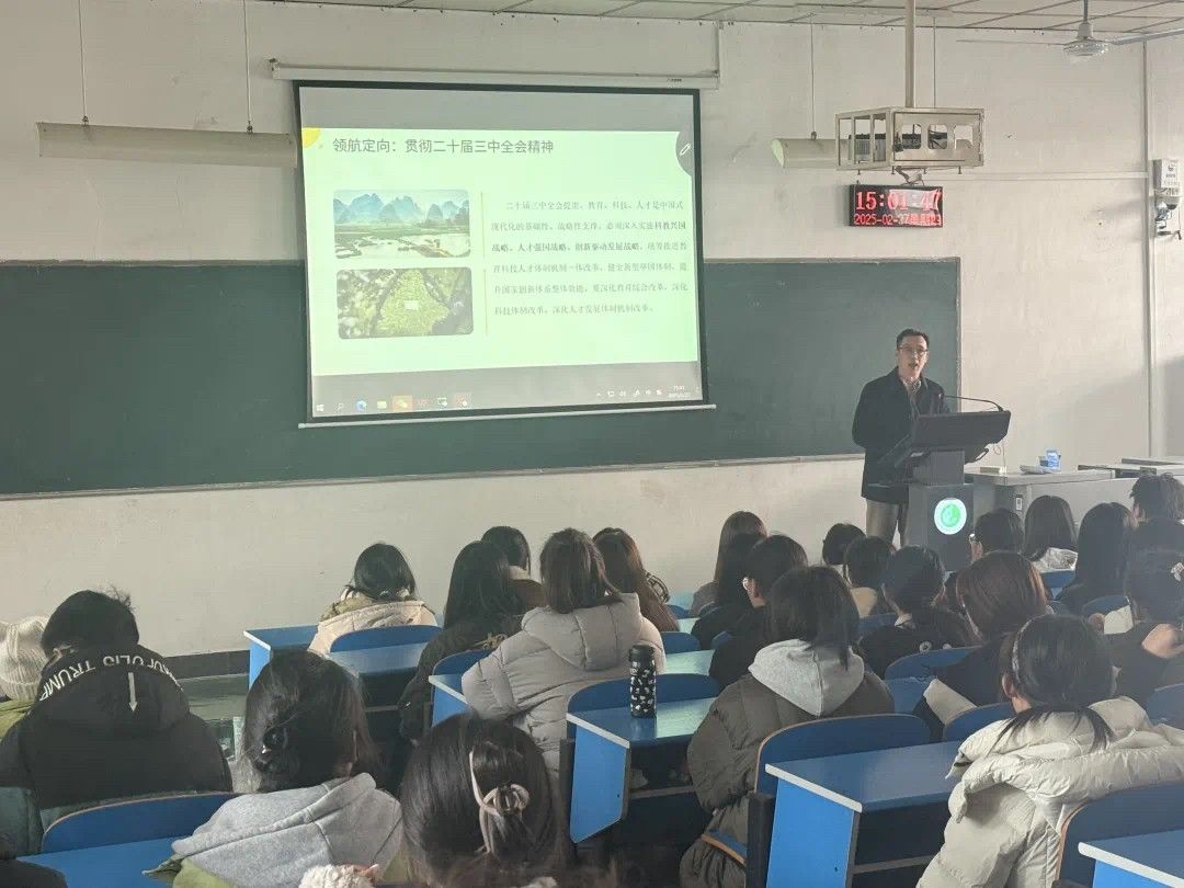 为帮助同学们迅速调整心态状态,以饱满的热情投入新学期的学习生活,筑牢校园安全屏障,2月27日,我院开展开学第一课主题教育班会。班会围绕思想政治教育、网络安全、法治教育、时政热点引领等内容展开。党委副书记李刚和各年级辅导员通过生动的讲述和最新的时政、详实的数据分析引发学生共鸣,进一步强化了同学们的责任意识与使命担当。