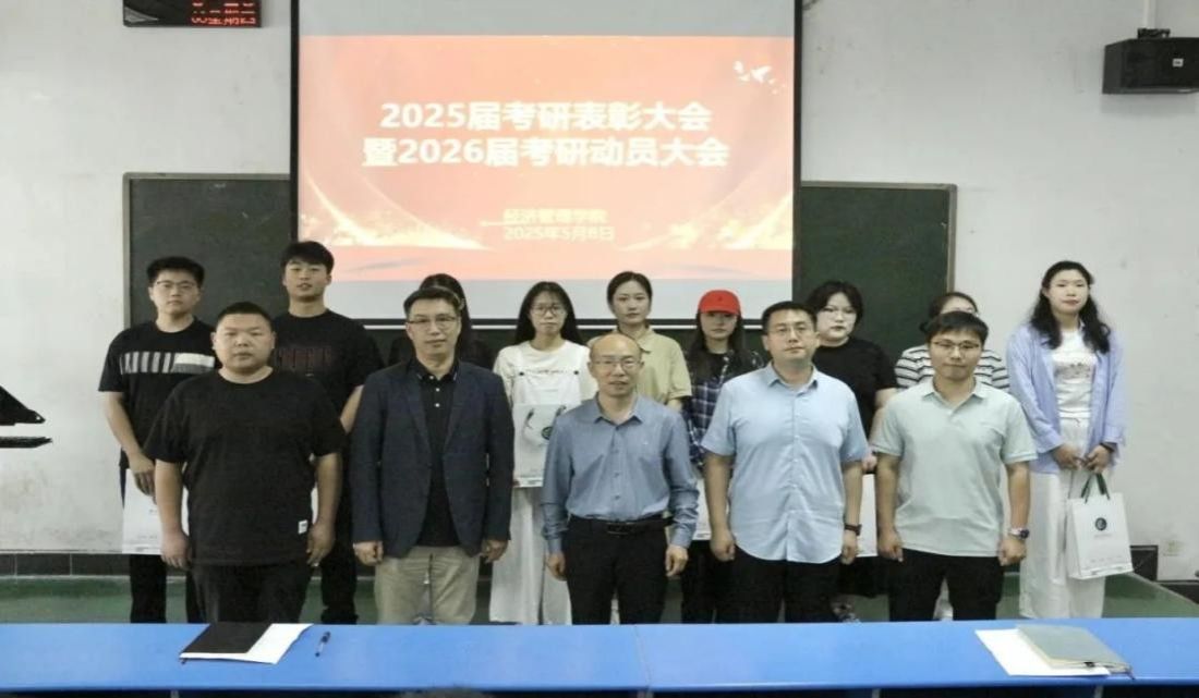 为表彰考研先进榜样、激励学子接续奋斗,5月8日下午,太阳成集团tyc7111在1206教室召开2025届考研表彰大会暨2026届考研动员大会。院长张振江、党委副书记李刚、副院长贺杰、学工办主任张增辉、团委副书记王哲、2022级辅导员贾续辉以及2025届考研学生代表、2022级学生参会,会议由毕业班辅导员尹晶晶主持。