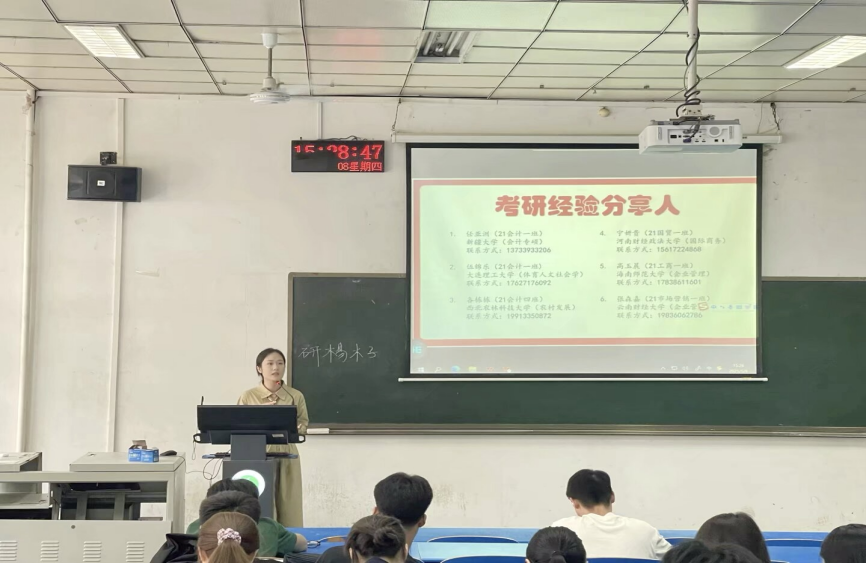 为进一步加强学风考风建设、激励2026届考研学子努力奋进,5月8日下午3点,我院在1206教室举办考研经验交流分享会,会议由毕业班辅导员尹晶晶主持。分享会共邀请六位2025届考研上岸学生,他们来自不同专业,结合自身经历,从规划、方法、心态等维度分享考研实战经验。