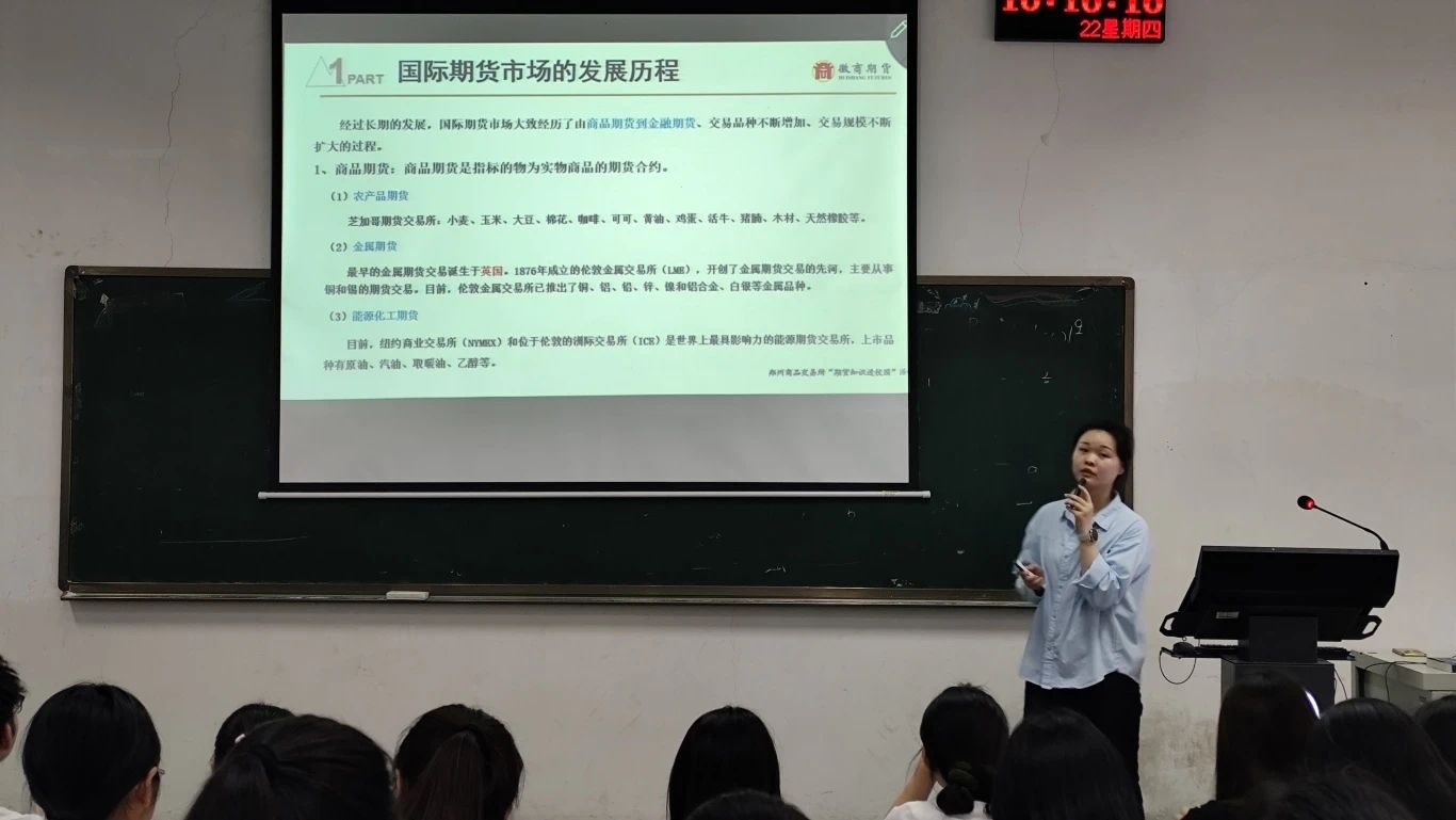本次宣讲活动首先由郑州商品交易所赵洁发表重要讲话。她回顾赛事发展历程时指出,自首届举办以来,赛事始终将大学生群体作为重点参与对象,致力于为青年学子搭建理论联系实际的优质平台。通过真实的市场模拟与案例实践,帮助学生将课堂所学转化为解决实际问题的能力。