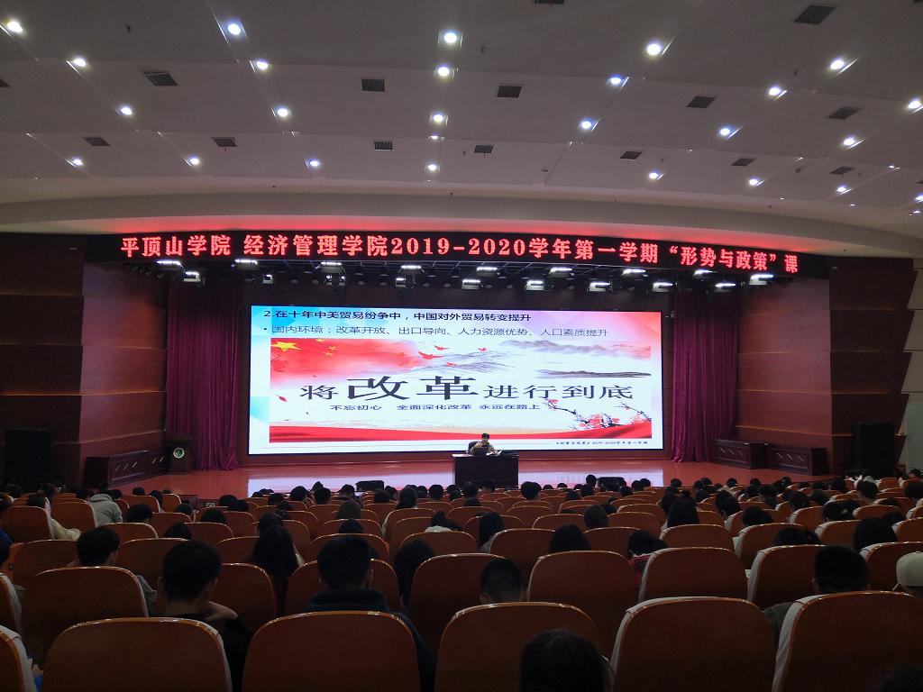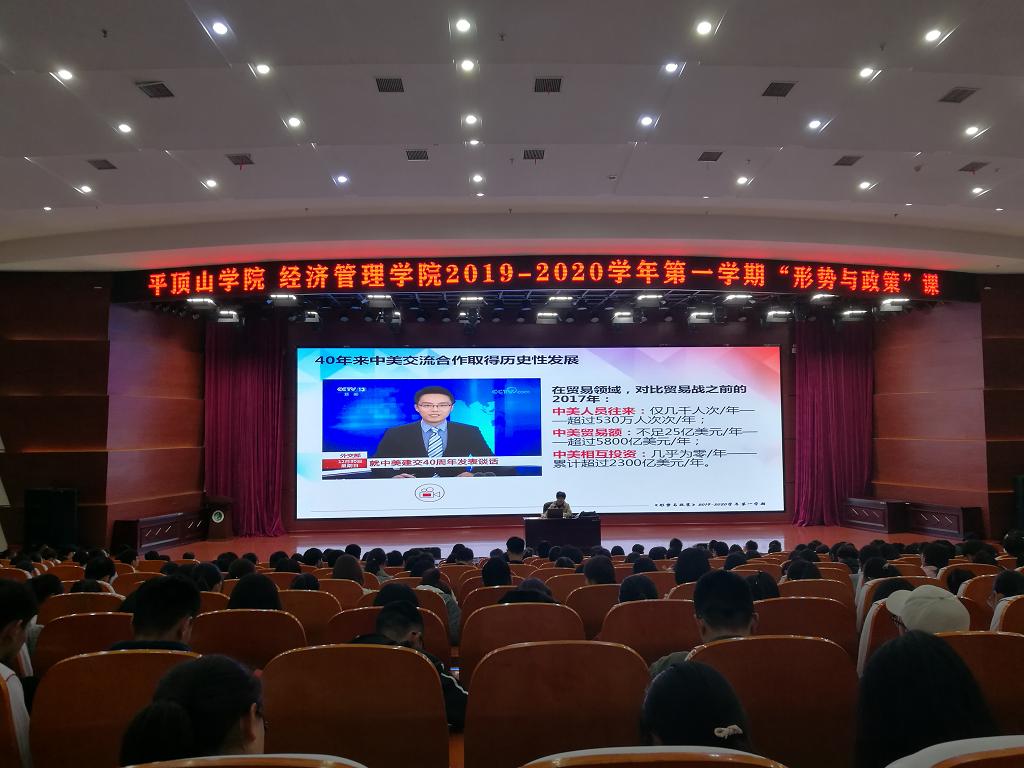 2019年11月12日晚,太阳成集团tyc7111在中心会议室向太阳成集团tyc71112019级全体学生开展《形势与政策》系列讲座第二讲,主讲人为太阳成集团tyc7111党总支书记刘嘉俊。