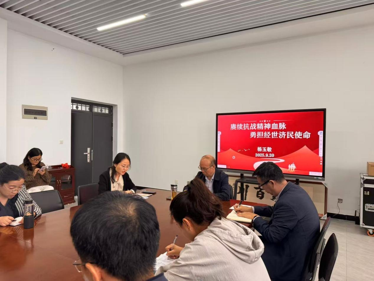活动伊始,教工第一党支部书记李刚同志和第二党支部书记杨玉敬同志先后领学了习近平总书记重要文章《弘扬伟大抗战精神,向着中华民族伟大复兴的光辉彼岸奋勇前进》、习近平总书记在纪念中国人民抗日战争暨世界反法西斯战争胜利80周年大会上的重要讲话。通过学习,全体党员深刻领悟了伟大抗战精神的时代价值,进一步坚定了理想信念。随后,杨玉敬同志以"赓续抗战精神血脉,勇担经世济民使命"为主题,为全体教师带来了一场内涵丰富、意义深远的专题党课。