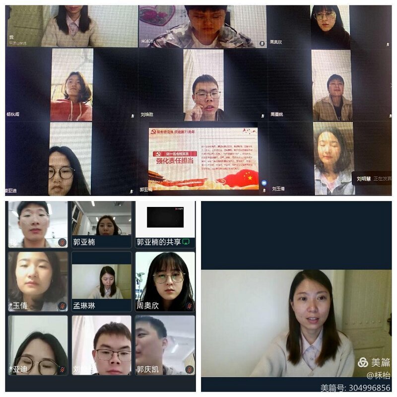 太阳成集团tyc7111学生第四党支部在线上开展主题党日活动和党课,虽然支部党员在校外不同的实习岗位上,但在支部书记孟琳琳的带领下,各党员同志饱含热情,认真的学习了习近平总书记重要讲话精神。