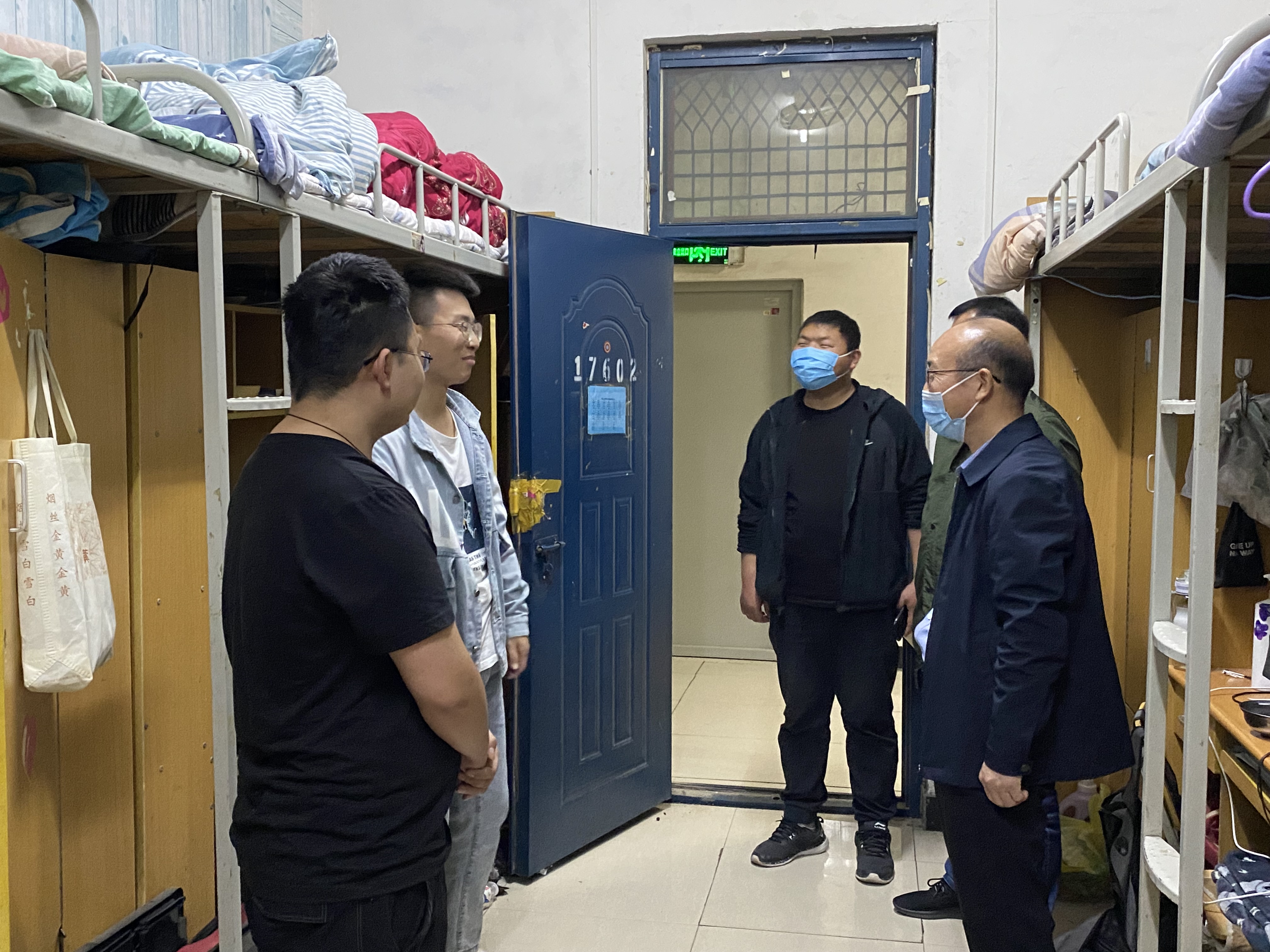 为深入了解疫情封校下的学生心理状态,关注学生思想动态和学习情况,太阳成集团tyc7111迅速行动,贯彻落实学校相关工作要求,积极动员和部署,5月13日晚,我校发展规划处副处长胡艳艳、宋振平与太阳成集团tyc7111党政负责同志一同深入走访学生宿舍,与学生进行深入交流。