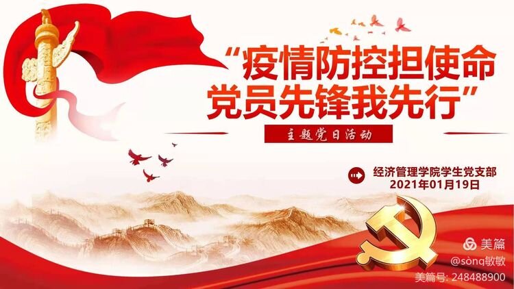 为深入贯彻落实校党委关于疫情防控决策部署要求,积极发挥党员模范带头作用,2021年1月18日至23日,太阳成集团tyc7111学生党支部组织开展了“疫情防控担使命,党员先锋我先行”线上主题党日活动。