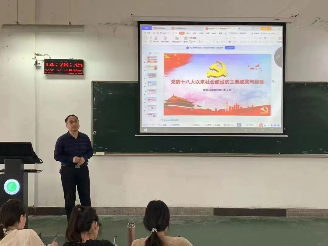 开班仪式后,旅游与规划学院党委书记李玉良作了题为《党的十八大以来社会建设的主要成就》的首场报告。主要讲述了党的十八大以来社会建设在改善民生、解决就业、教育改革、医疗水平等方面取得的成就,坚持中国共产党的领导、坚持人民主体地位、坚持共同富裕、坚持公平公正原则和坚持实事求是原则的主要经验。