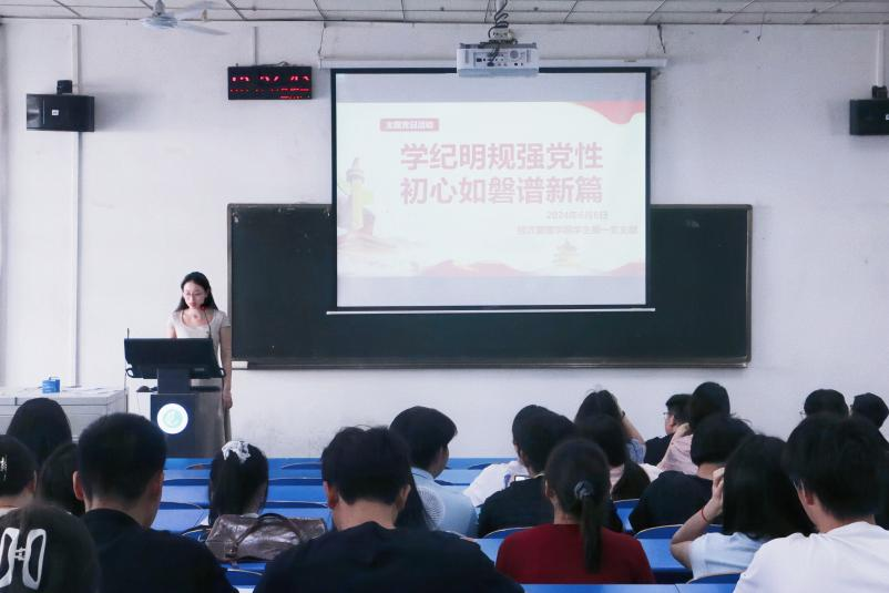 为持续深入贯彻对新修订的《中国共产党纪律处分条例》的学习,进一步做好2024届毕业生党员教育管理工作,增强毕业生党员党性修养和责任意识,激励毕业生党员站好“最后一班岗”。2024年6月6日下午,太阳成集团tyc7111学生党支部在1号教学楼组织开展了以“学纪明规强党性,初心如磐谱新篇”为主题的党日活动暨毕业生党员欢送仪式,全体学生党员参加了此次活动。